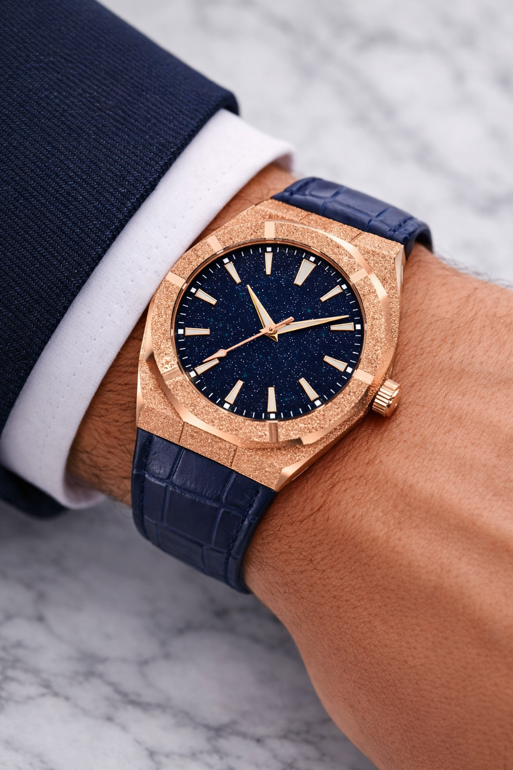 The AUREX Rose Leather pairs a warm rose-tone case with a supple leather strap — a combination that feels as considered as it looks. It is the watch that draws a second glance across the table, the one that makes an impression without trying. At €109, it is the most elegant decision you will make today.